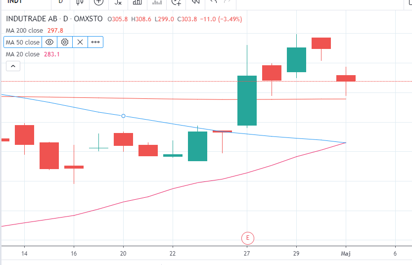 Har gjort backtesting på Indutrade då MA20 korsar MA50 nedifrån.