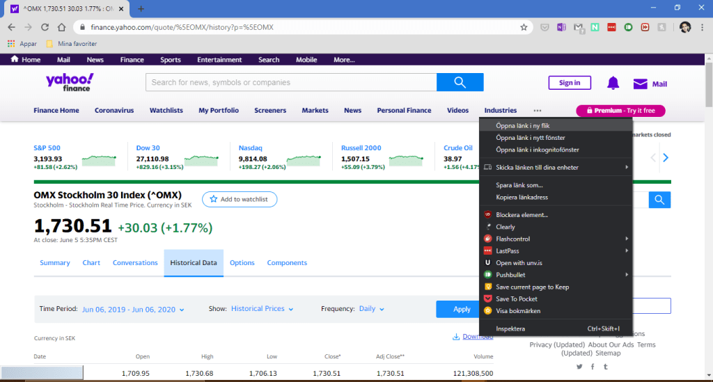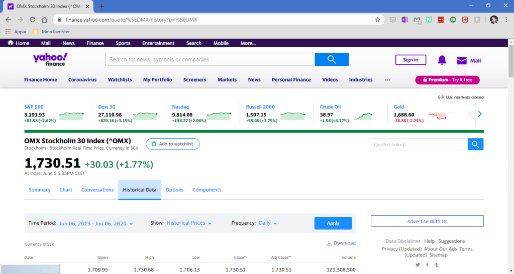 Angående var jag får min data ifrån så hämtar jag all data från Yahoo Finance.