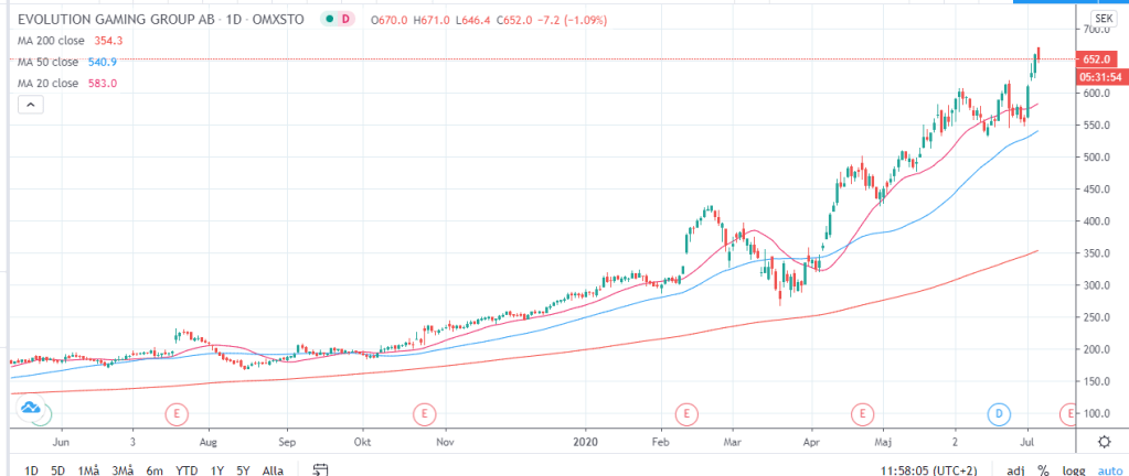Jag skrev den 25:e juni att vi hade en teknisk köpsignal i Evolution. Idag ser vi ut att återigen stänga ovanför en ny 200dagars-högsta vilket leder till en uppdatering av förra analysen.