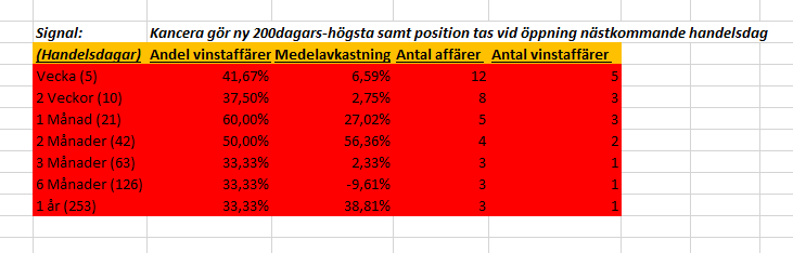 Vi kan se ovan att vi inte har någon edge i aktien, dock så vill jag göra er uppmärksamma på de höga avkastningarna, det brukar vara så i små aktier som är volatila. Volatiliteten i aktien är enligt Avanza 126,20 % vilket kan jämföras med Fingerprints som är 46,52 % (som jag anser är en bra måttstock då den aktien var väldigt volatil för några år sedan).