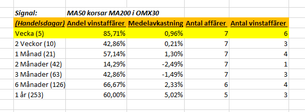 Vi har dock en spännande signal i OMX30 som är nära att effektueras och det är att MA50 korsar MA200.