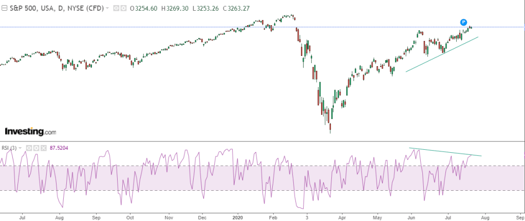I onsdags så satt jag och kolla på lite grafer och såg att vi hade en negativ divergens i både OMX samt S&P 500 så att vi än så länge idag fått en nedgång är inte så förvånande.