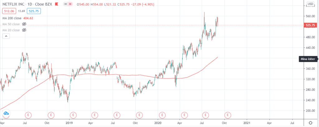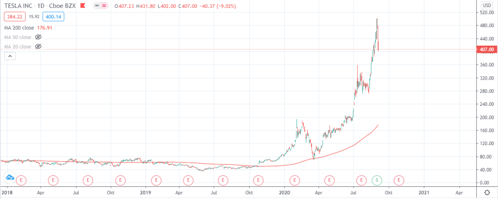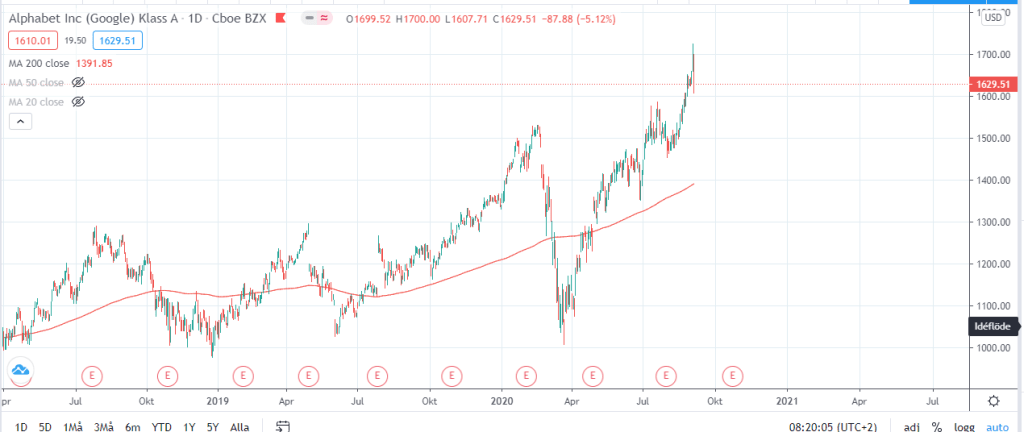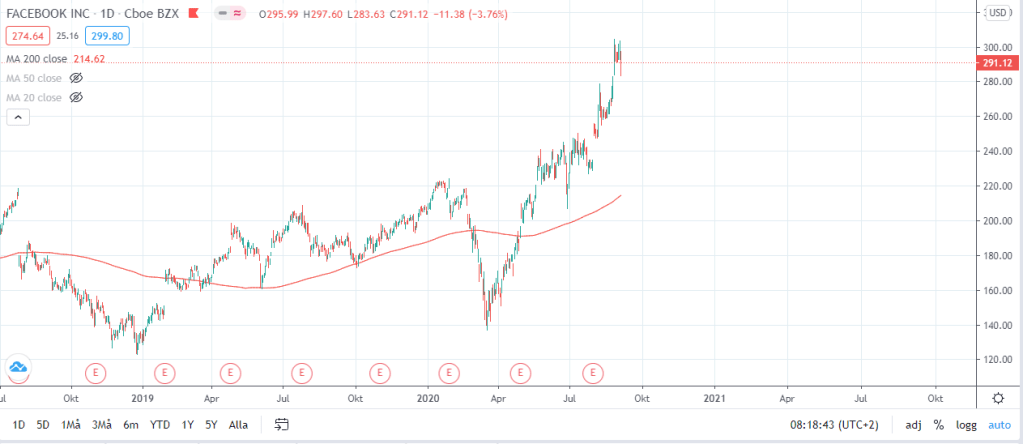 Igår så kunde man läsa på diverse internetsidor att vi hade ett ras på börsen men om vi kollar varifrån vi kommer så skulle jag inte kalla det något ras utan mer en hälsosam rekyl (”Hälsosam rekyl på börsen”). Ifall vi kollar på FAANG-bolagen (samt Tesla) så ser deras grafer ut som följande.