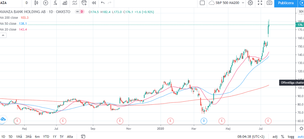 Förra veckan på fredagen så korsade MA5 MA10 i Avanza, jag gjorde backtesting i juli på Avanza fast då kollade jag på vad som hänt historiskt när aktien noterat en ny 200-dagars högsta.