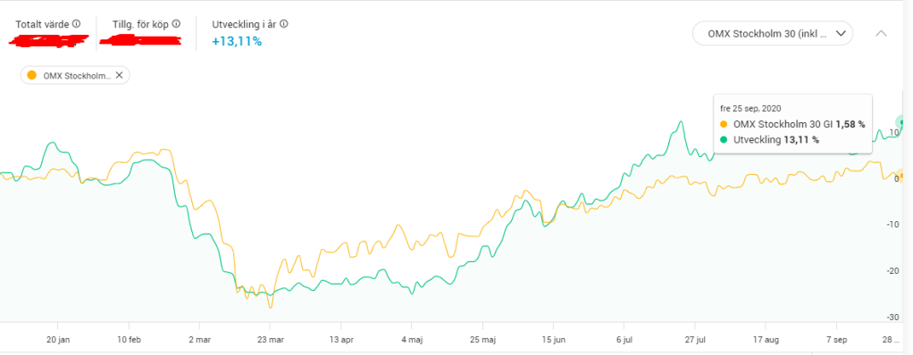 Portföljen har avkastat 13 % det här året vilket är cirka 11 % över börsen (inkluderat utdelningar) så jag är nöjd.