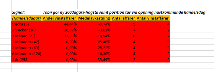 Gjorde även en analys i augusti på Tobii och sedan dess har statistiken förbättrat på siffrorna vilket vi kan se från siffrorna nedan som är från förra backtestingen. Speciellt tidsperioderna 2 veckor samt 1 månad har ökat avsevärt.
