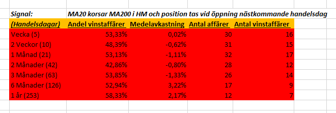 Vi kan se att vi inte har någon edge, så som det verkar så är inte botten nådd dock kanske MA50 korsar MA200 visar något annat då det är en signal som många anser är en köpsignal (dock vet vi att det är inte alltid som det är en köpsignal då aktier skiljer sig åt angående hur de besvararar sådana signaler).
