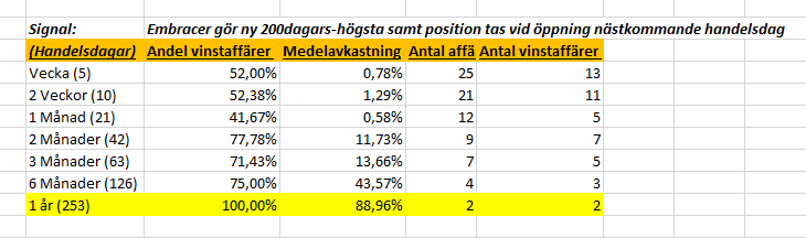 Igår gjorde aktien återigen en ny 200-dagars högsta så tänkte kolla hur det ligger till den här gången med edgen och om den har förbättrats i och med att vi haft en positiv utveckling sedan förra analysen.