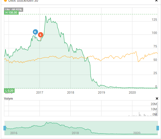 Jag ägde aktien när problemen uppenbarade sig vilket gjorde att jag sålde aktien (då hade jag inte börjat handla kvantitativt ännu utan enbart på känslor) vilket ni kan se nedan.