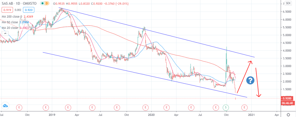 Jag gjorde backtesting på SAS den 6:e augusti som visade att vi inte hade någon edge. Skrev även om bolaget den 30:e september och då stod aktien i 2,412 kr för i att dagsläget handlas i 0,92 kr (alltså en negativ utveckling på cirka 62 %). Är det dags för aktien att studsa upp nu?