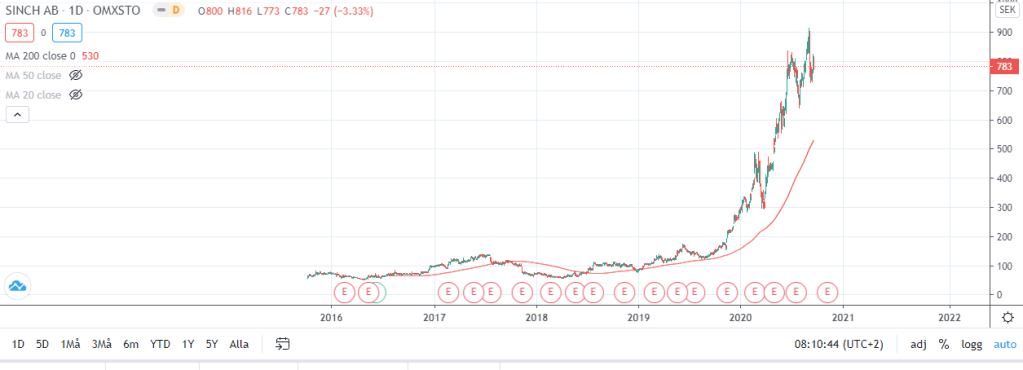Jag skrev om Sinch den 18:e september och då såg aktien ut som nedan.