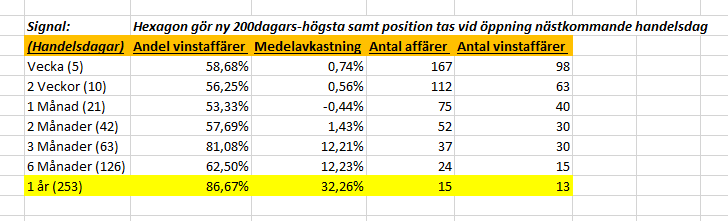 Här har vi en avkastning på 6 % sedan förra analysen. Igår så gjorde aktien en ny 200-dagars högsta så frågan är ifall vi har en edge.