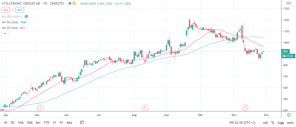 Anledningen till varför jag skriver om just Stillfront är för att MA20 handlas just nu under MA50 så signalen med hög edge kan snart visa sig.