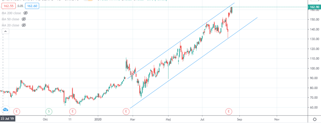 Den första gjorde jag den 20:e augusti och då stod aktien i 162,90 kr.