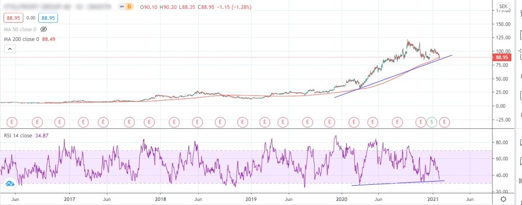 Idag är det som vanligt dags för mig att visa upp min portfölj samt utveckling för mina prenumeranter, då jag gör det i slutet av varje månad. Viktigt att visa att man lever som man lär nämligen. Har även gjort backtesting på ett av mina portföljbolag som handlas precis ovanför MA200 samtidigt som RSI-14 korsat värdet 35 ovanifrån, för att se ifall sannolikheten är stor för fortsatt uppgång.