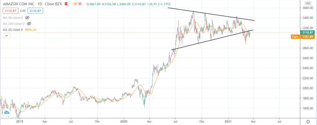 Sist men absolut inte minst så är det dags för dagens backtesting som är på Amazon. Vi kan se hur aktien ser ut nedan: