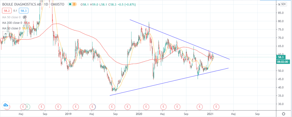 Den 21:a januari så analyserade jag ett bolag vid namn Boule Diagnostics efter önskemål från mina prenumeranter. Då kollade jag om det fanns en stor sannolikhet för uppgång när MA20 korsar MA200 och mina prenumeranter fann att svaret var ja på den frågan.