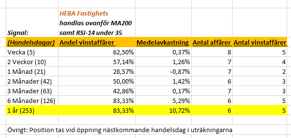 Idag fick vi se att MA5 korsade MA10 så har återigen gjort backtesting på HEBA (dock på en ny signal) för att studera ifall vi har en edge eller ej.