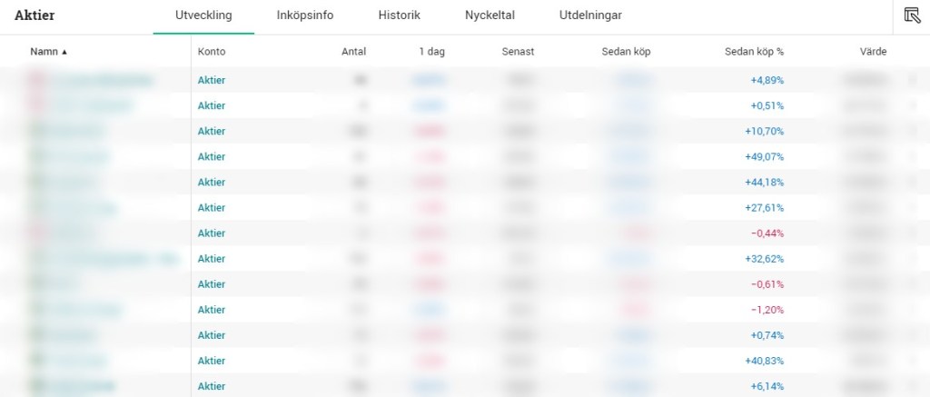 - Full transparens genom att jag i slutet av varje månad delar med mig av min portfölj (visar även summan jag äger).