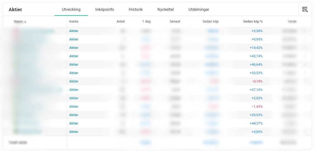- Full transparens genom att jag i slutet av varje månad delar med mig av min portfölj (visar även summan jag äger).