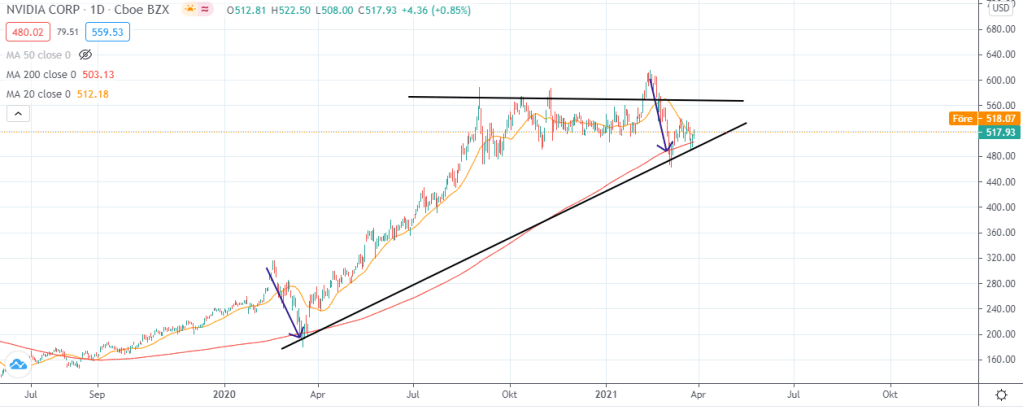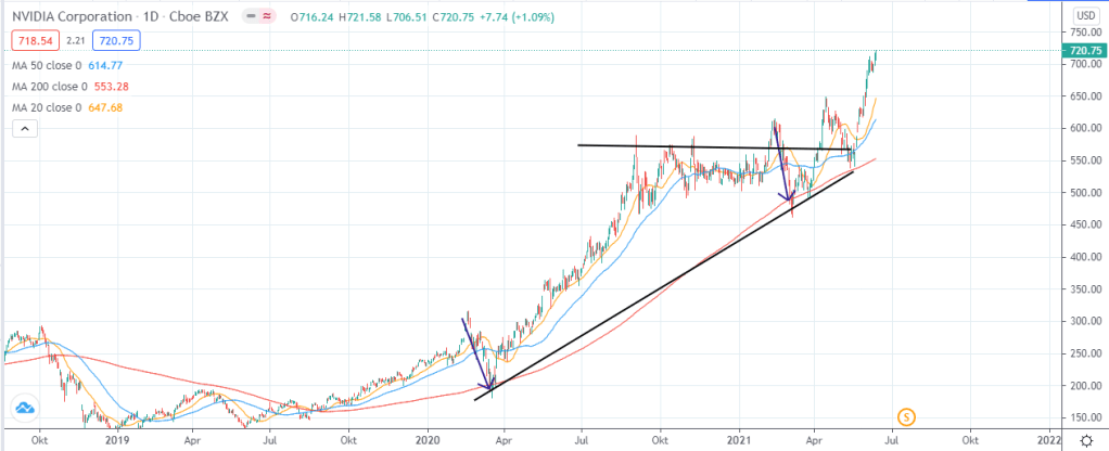 Jag gjorde backtesting på NVIDIA den 30:e mars. Då kollade jag hur aktien brukar utveckla sig när den stänger ovanför MA20 och min modell visade på att det fanns en edge (stor sannolikhet för uppgång). Den analysen föll ut bra då vi kan se nedan att aktien har avkastat cirka 39%. Idag har jag gjort en ny analys på bolaget då vi kunde se att NVIDIA stängde på en ny 200-dagars högsta igår och vill veta om det fortfarande finns någon kräm kvar i aktien (stor sannolikhet för uppgång?).