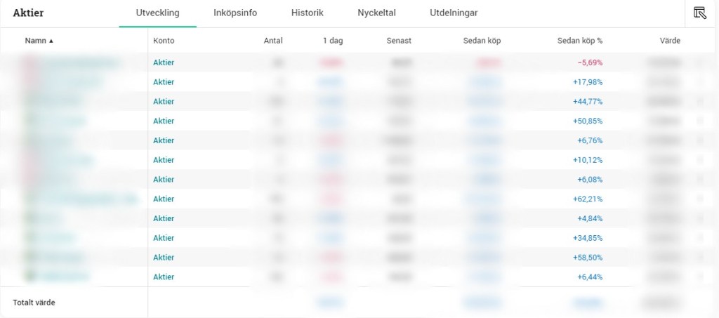- Full transparens genom att jag i slutet av varje månad delar med mig av min portfölj (visar även summan jag äger).