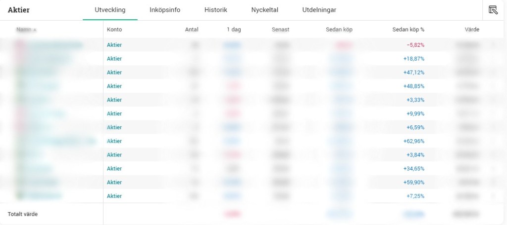 - Full transparens genom att jag i slutet av varje månad delar med mig av min portfölj (visar även summan jag äger).