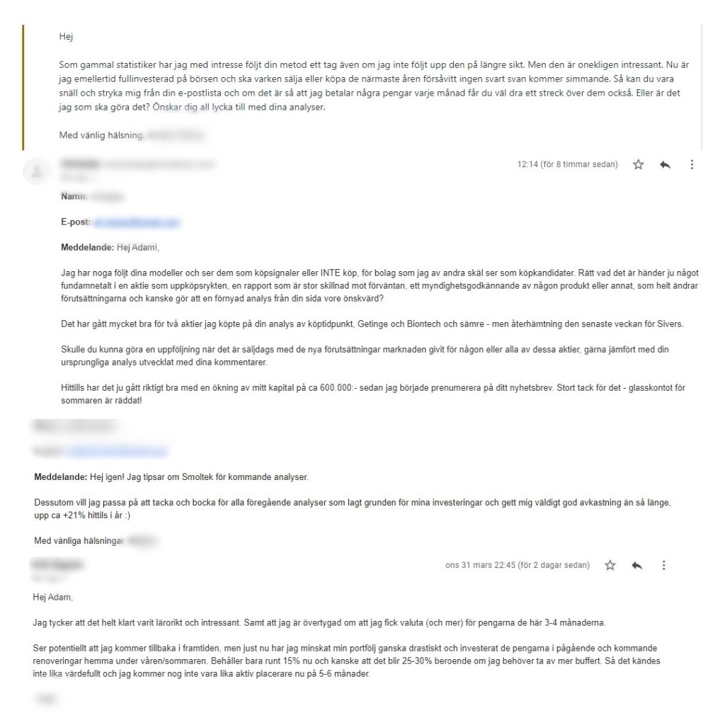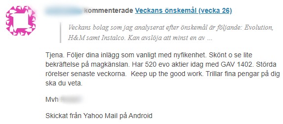Här nedan ser ni vad några av mina tidigare samt nuvarande prenumeranter tycker om tjänsten.