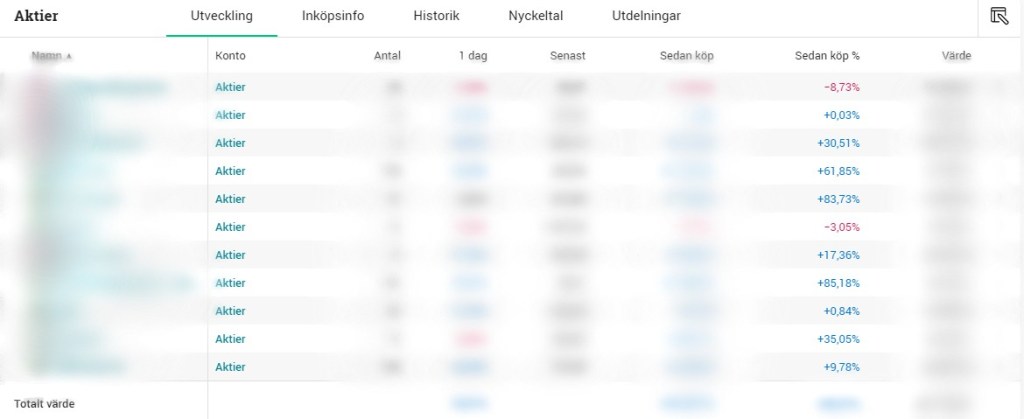 - Full transparens genom att jag i slutet av varje månad delar med mig av min portfölj (visar även summan jag äger).