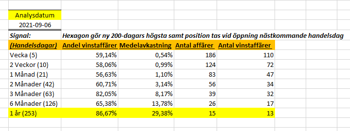 Senast jag gjorde backtesting på Hexagon var i september och då skrev jag följande: