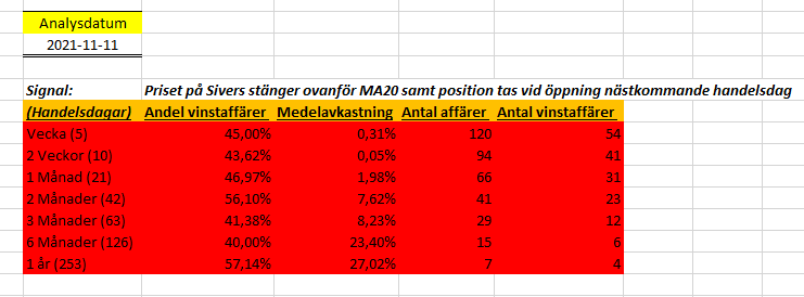 Senast jag gjorde en backtesting på Sivers var i november förra året och även då efter att fått in önskemål angående att göra en analys på den aktien. Då såg aktien ut som nedan.