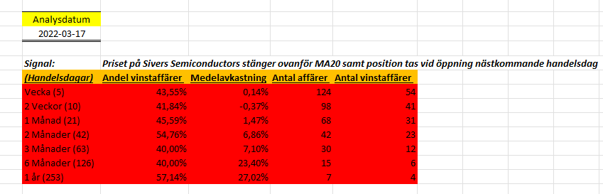 Idag har jag gjort backtesting på Sivers samt Trelleborg och kan avslöja att vi har en edge i ett av bolagen.
