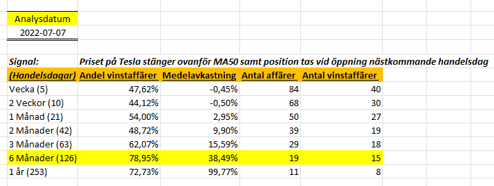 Vi kan se att det fanns en edge i aktien och signalen visade sig dagen efter analysen och har avkastat ungefär 17%.