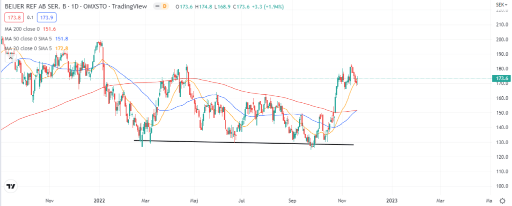 Gjorde en analys på Beijer Ref i slutet av förra månaden och delade då med mig av följande graf samt tabell till mina prenumeranter.