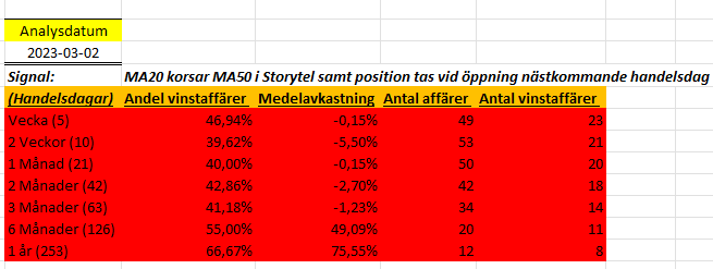 I fredags fick vi se att Storytel visade tecken på översåldhet då RSI-14 korsade värdet 30 ovanifrån. I dagens inlägg svarar jag på huruvida det är dags för bottenfiske eller ej enligt statistiken.
