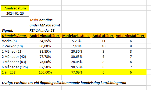 Idag kör vi en gratis-analys då det var längesedan jag gjorde någon sådan (måste varit över ett år sedan). Idag har jag gjort en analys på Tesla då aktien ser rejält översåld ut och vill veta om sannolikheten är stor att komma ut i en vinstaffär ifall man tar en position nästkommande handelsdag efter en signal som uppvisade sig igår.