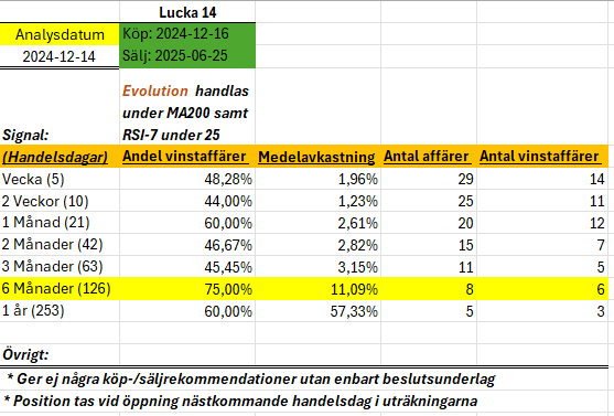 Ger som vanligt ut mina 28 analyser till mina prenumeranter under månaden så in och prenumerera för att inte missa dessa!