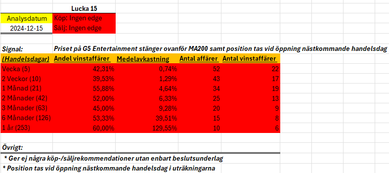 Julkalendern fortsätter med en analys på G5 Entertainment!