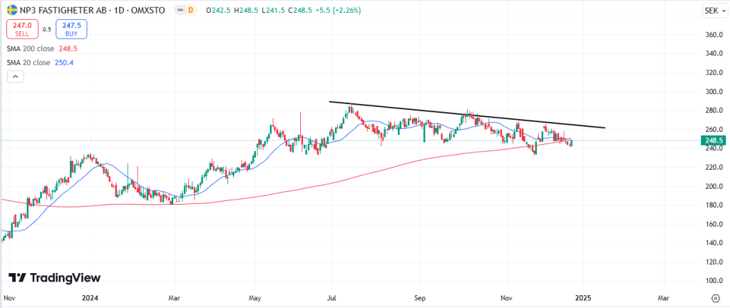 Den här aktien befinner sig i en fallande trend dock har vi stängt ovanför MA200 idag men vi kan se att vi även gjorde det ganska så nyligen och var enbart ett falskt utbrott på ovansidan då vi återigen tog fart nedåt senare.