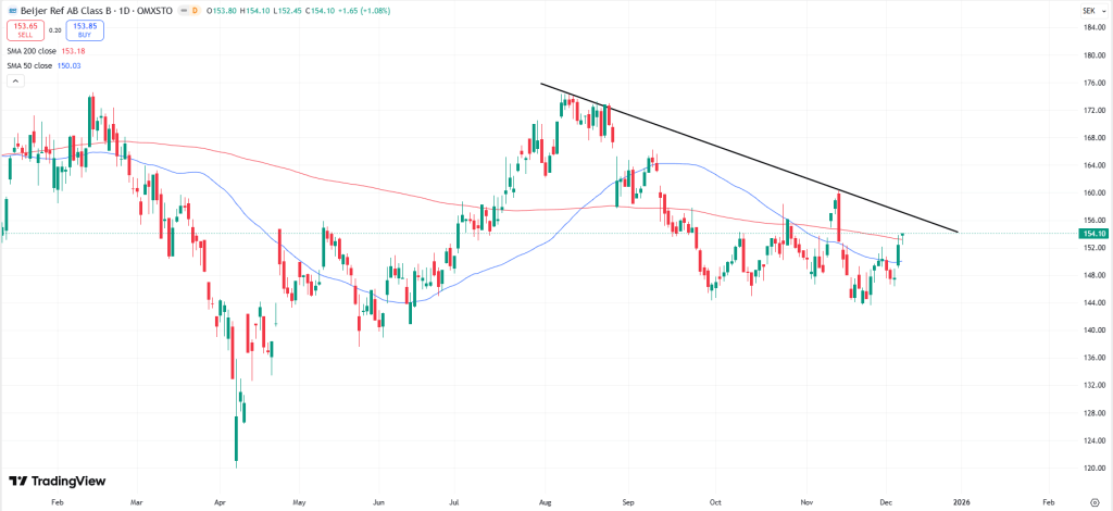 Dagens bolag som jag har gjort en analys på är Beijer Ref och den aktien ser ut som nedan i skrivande stund.