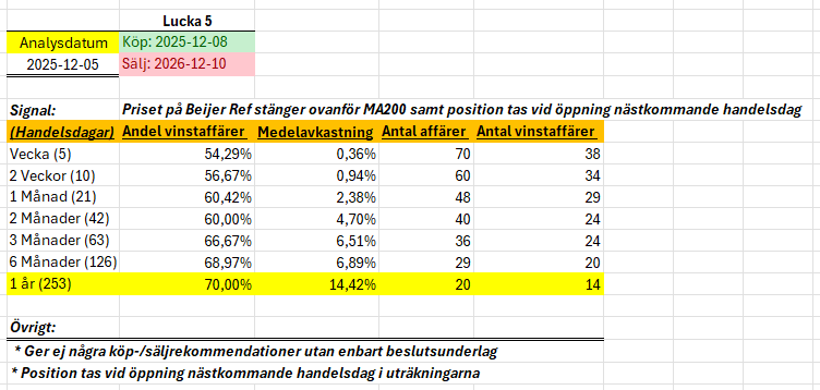 Vi kan se att det finns en edge ifall vi tar en position nästkommande handelsdag samt behåller den i 253 handelsdagar.
