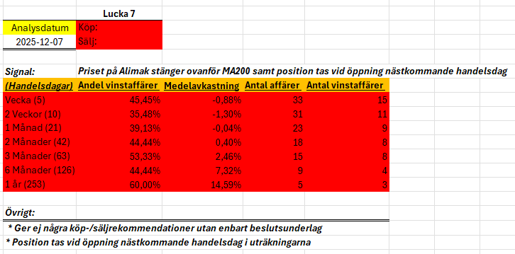 I dagens lucka har jag gjort en analys på Alimak som vi fick se stängde ovanför MA200 i fredags.