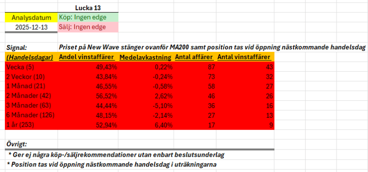 I dagens lucka har jag gjort en analys på New Wave (äger själv aktier i bolaget) då vi fick se aktien stänga ovanför MA200 igår.