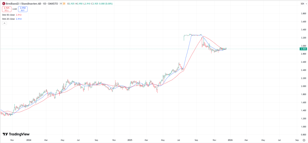 I fredags fick vi se MA20 korsa MA50 underifrån i bolaget Bredband2 så i dagens lucka så har jag gjort en analys på den aktien.