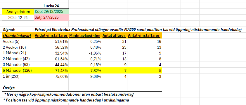 Då var det dags för julens sista lucka samt årets sista gratis-analys! Idag har jag gjort en analys på Electrolux Professional som vi fick se stängde ovanför MA200 igår.